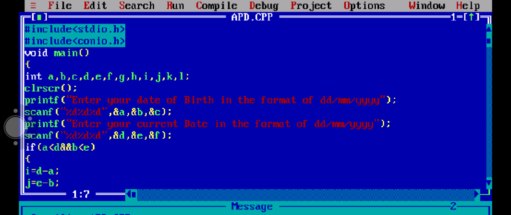 - printf(“Enter your date of Birth in format of DD/MM/YYYY”);