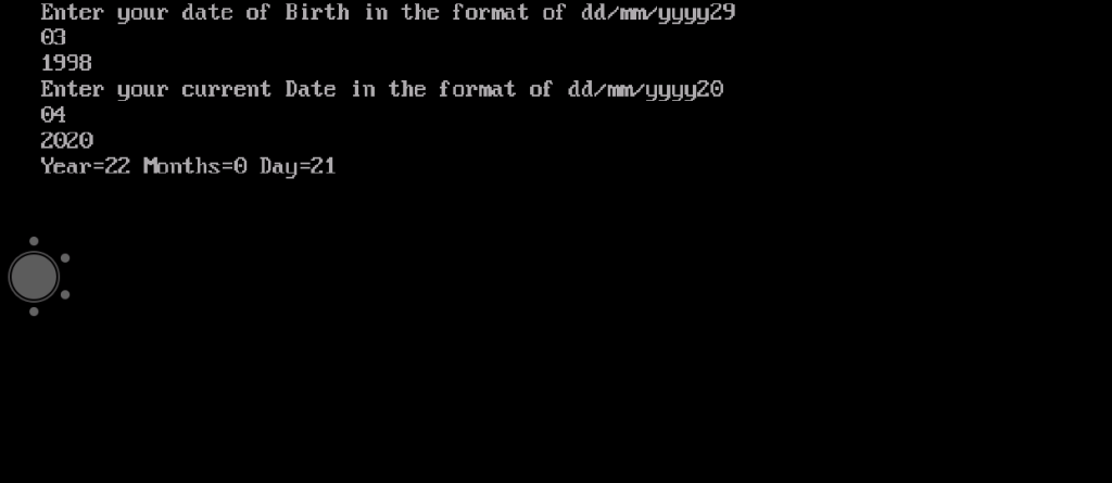 - prinf(“%d Years %d Months %d Days”, k, j, i);