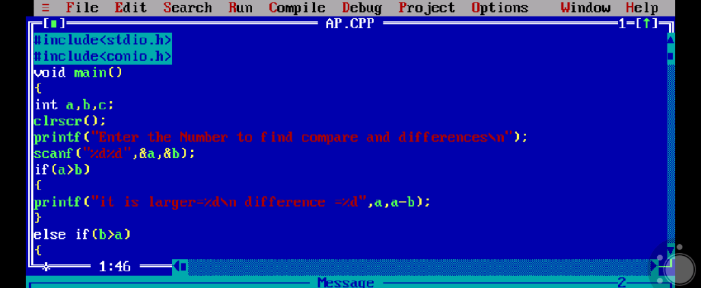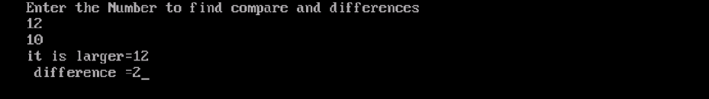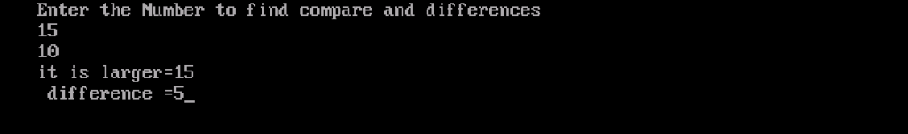 In this programme, comparing of two number which one is ‘LARGER‘ and find the differences of them.