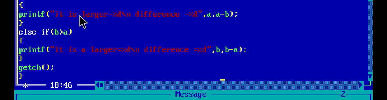- printf(“larger number is = %d \n differences is = %d”, b, b-a);