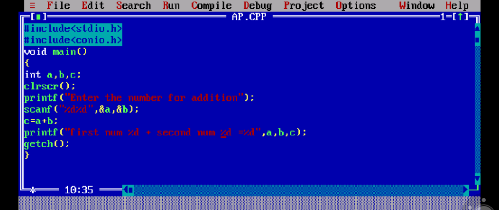 - printf(“Enter two number for addition”);