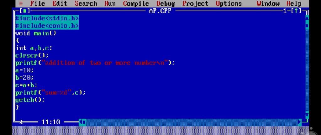 In this programme initially you can take number before run. example a=10, b=20,c=30, d=40. This programme is only for basic and for beginners.