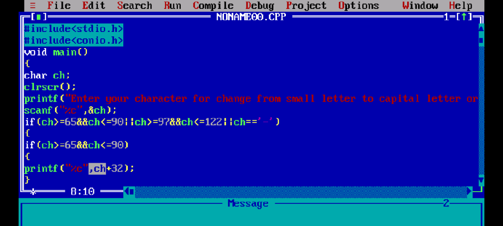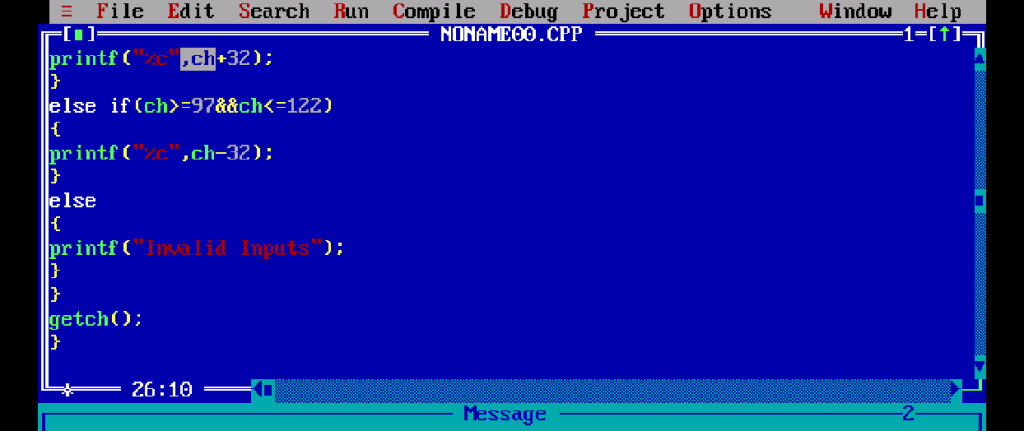 - If you enter ch=’A’ then according to programme it add 32+ in code and show results=‘a’ .