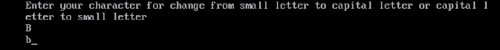 - printf(“Enter your alphabet to change the small to capital letter to capital to small letter”);