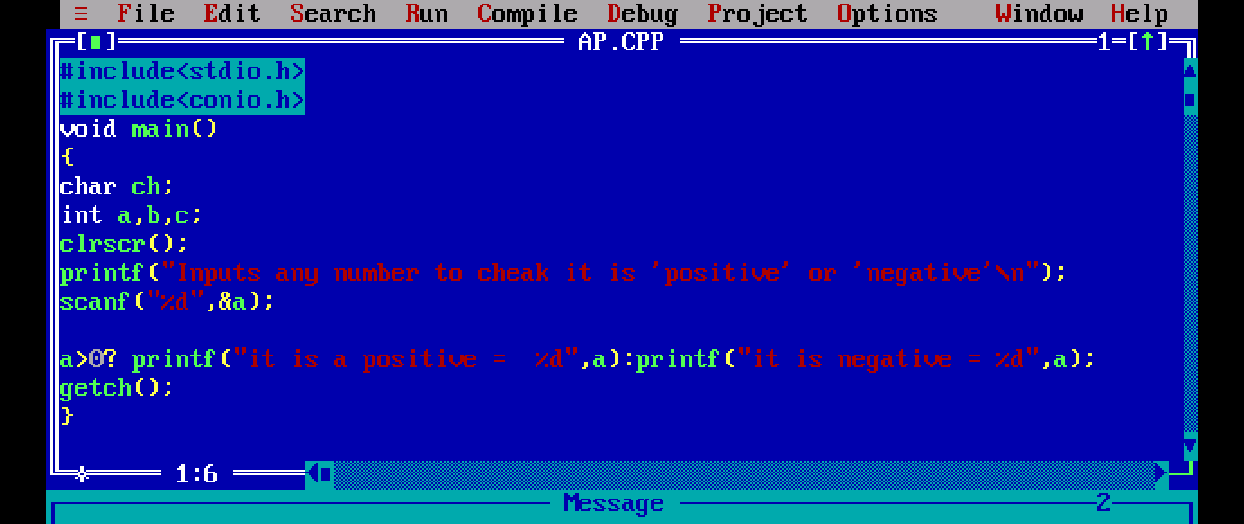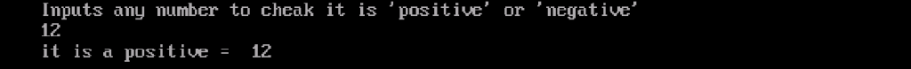 - a>0? printf(“it is a positive = %d”, a):printf(“it is a negative = %d”, a);